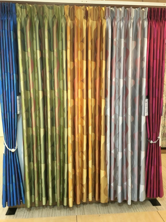 そして日本を代表するテキスタイルデザイナーの1人、本田純子(ホンダスミコ)さんブランドのカーテンがズラリと…