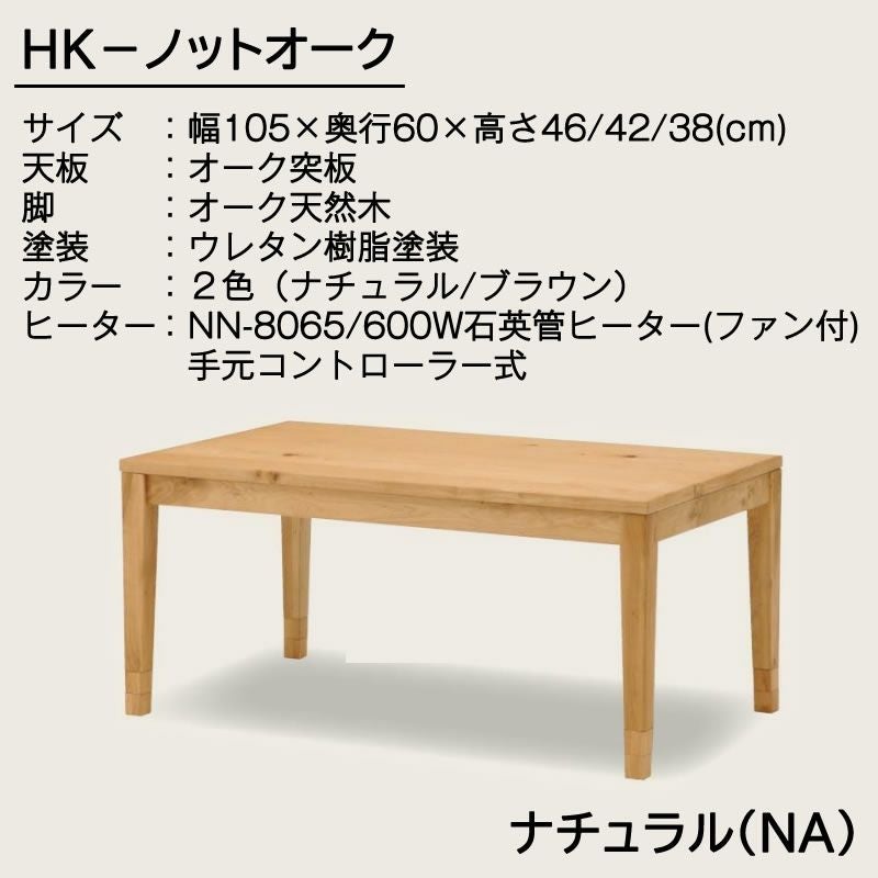 | 商品サイズ:大 ●送料について 【サイズ】幅1050×奥行600×高さ460・420・380(mm) 【天板】オーク突板 【脚】オーク天然木 【塗装】ウレタン樹脂塗装 【カラー】ナチュラル 【ヒーター】NN-8065(手元コントローラー式) ■600W石英管ヒーター(ファン付き) ■遠赤外線の効果で体の芯まであたたかく、更にファンの効果でこたつ内部の隅々にまでムラなく暖気を循環させます ■シンプルなデザインに節つきオークの突板を使用した温かみと風合いのあるこだわりの天板です ■2個の継ぎ脚を自由に付け替えて、3段階の高さ調節をすることができるので、座椅子などに合わせて高さをお選びいただけます MKCD:2510 |