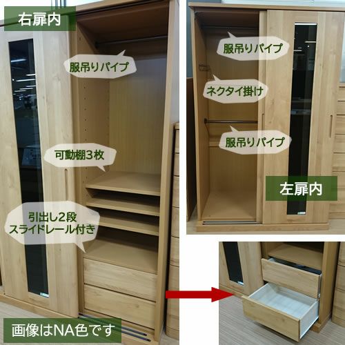 引き戸タイプから開き戸タイプ、オープンタイプなど様々なワードローブを扱っております。 ミラー付の機能性に優れたアイテムなど生活スタイルに合わせてお探しください。