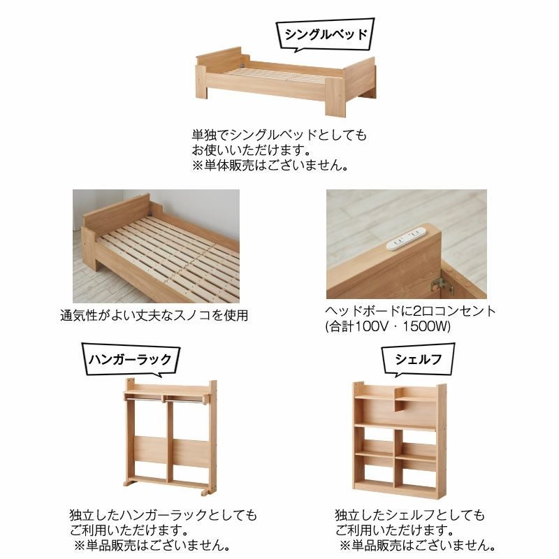 ■シングルベッド、シェルフ、ハンガーラックとして、それぞれ独立してお使いいただけます