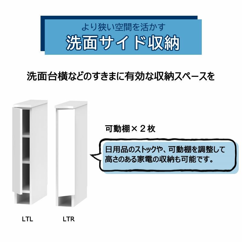 3. サニタリーすきまくん 幅15-45 奥行42/52 洗面収納棚 洗面サイド収納 LTL LTR