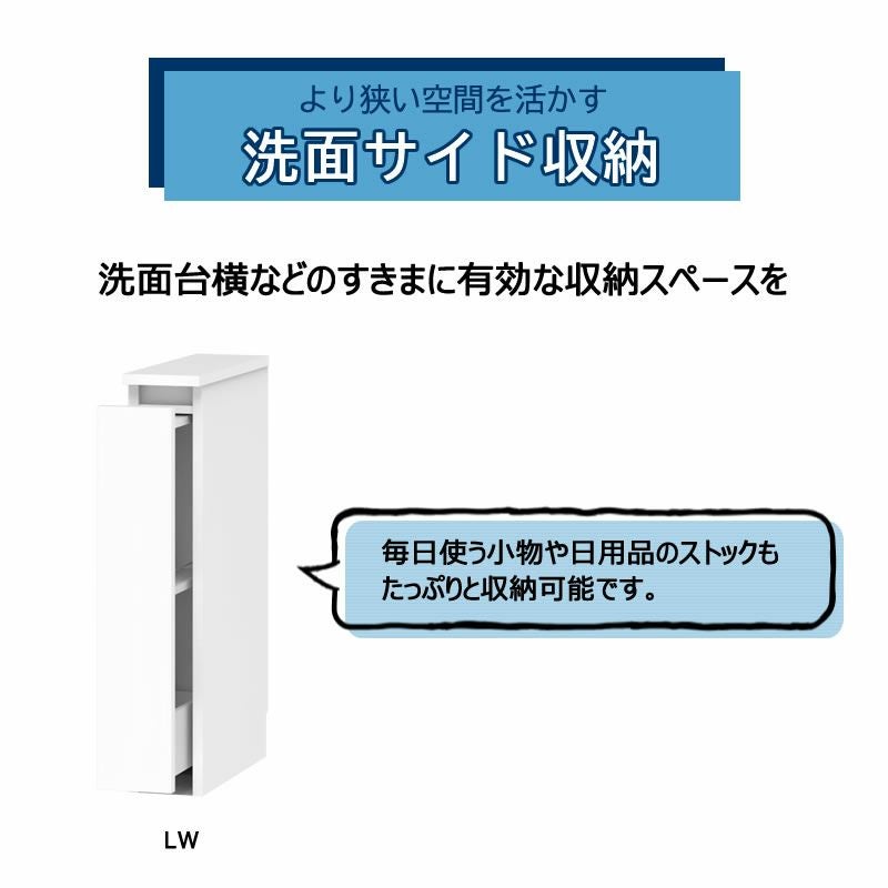 3. サニタリーすきまくん 幅15-45 奥行42/52 洗面収納棚 洗面サイド収納 LW