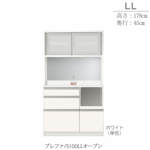 カウンターの高さ2サイズ!カラーは3色から選べる! 食器棚 プレファ S100LLオープン〔奥行45cm/カウンター高さ85cm/総高178cm〕【キッチン収納/ダイニングボード/3色対応/日本製/高橋木工】