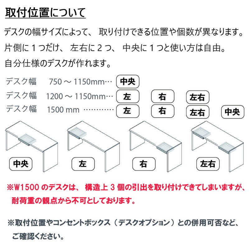 ■デスクの幅サイズによって、取り付けできる位置や個数が異なります