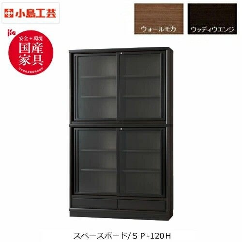 天然木使用で、重厚感のある落ち着いた雰囲気! 小島工芸 スペースボード本棚 選べる扉タイプ ハイタイプ SP-120H 全2色 書棚 飛散防止ガラス