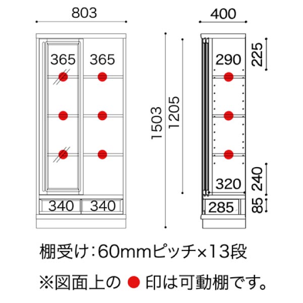 【サイズ】幅803×奥行400×高さ1503(mm)